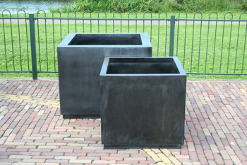 Zwart zinken tuinbak “Gigante” – Binnen: 80×80 h.80 / 55×55 h.70cm Buiten:100x100h.80 / 65×65 h.70cm | Black Zinc garden planter “Gigante” – inside: 80×80 h.80 / 55×55 h.70cm outside:100x100h.80 / 65×65 h.70cm